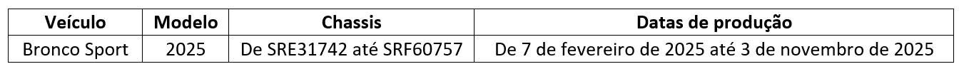A Ford Motor Company Brasil Ltda. emitiu um comunicado oficial convocando proprietários do Ford Bronco Sport, modelo 2025, para um recall de segurança. A ação visa corrigir uma falha potencialmente perigosa no módulo de controle do painel de instrumentos, que pode comprometer informações vitais de condução e avisos de segurança. O problema técnico identificado está … Ler mais